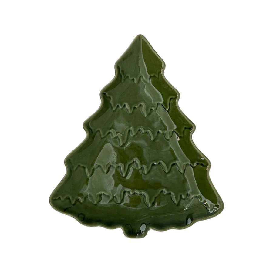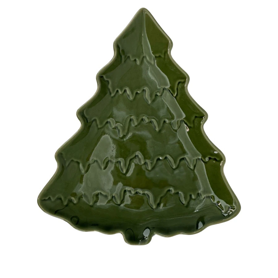 Create a beautiful and festive table setting with the Gran serving platters from Miljögården. These platters are shaped like fir trees and made of stoneware with a reactive, green glaze, which gives each platter a unique and vibrant appearance.