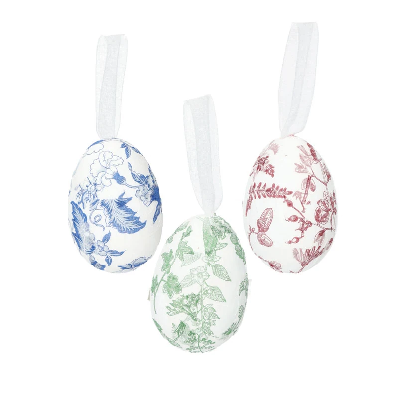 The eggs have a white base and a beautiful floral pattern that is available in three color choices: