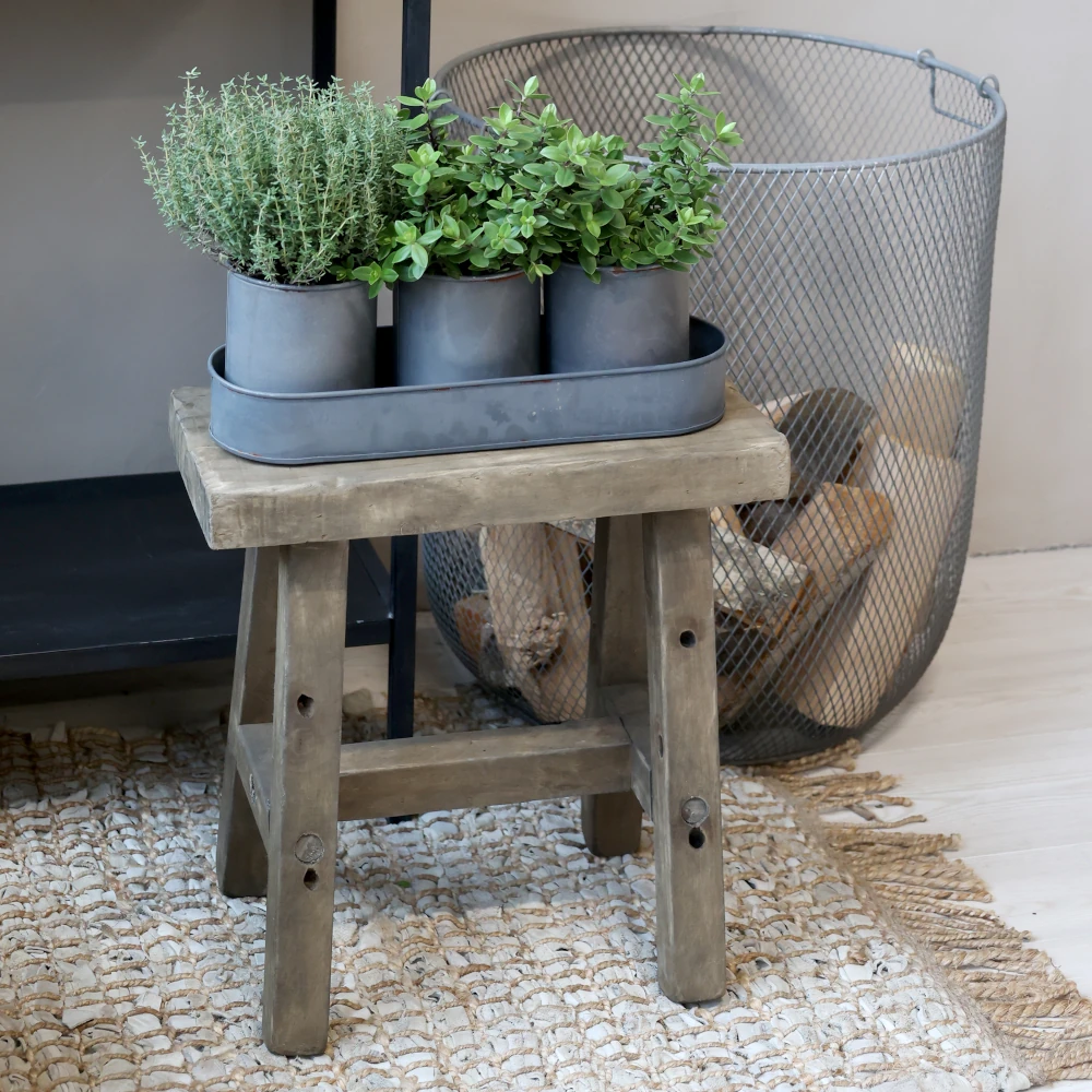 Beautiful rustic stool made of wood with a naturally grayed surface that gives a feeling of age and patina. The simple, robust design makes the stool equally suitable as an extra seat, side table or as a decorative detail in the home. Perfect for use in the hall, kitchen, bathroom or on the covered terrace.