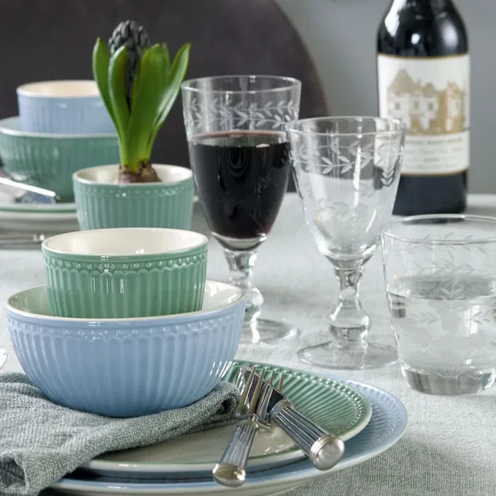 The decorative cuts give the glass an exclusive, almost crystalline feel - but with a modern and user-friendly design that can withstand both parties and everyday life. The glass lies comfortably in the hand and elevates the table setting, whether it is for the breakfast tray or the dinner table.
