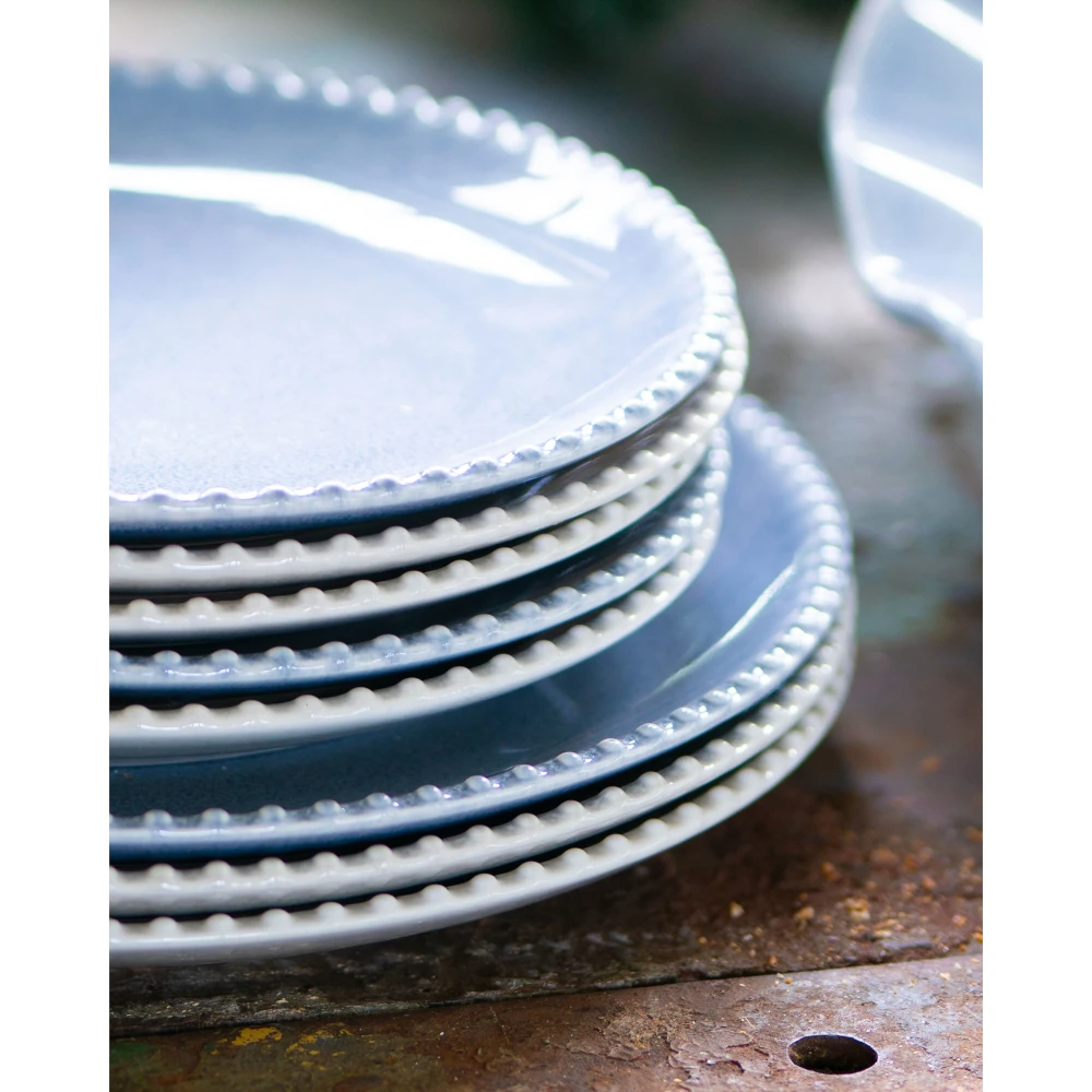 Plate Aurore from A Lot Decoration is made of stoneware and comes here in the color Ocean. The sea blue shade together with the decorative pearl edge gives a timeless and elegant feel to your table setting.