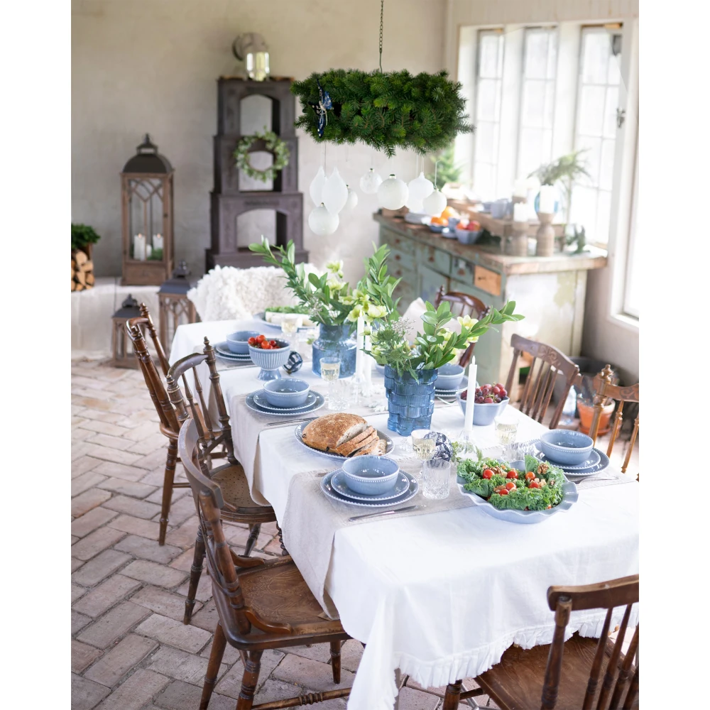 Serving platter Elsa from A lot decoration is a beautiful stoneware serving platter, here in a sea blue tone Ocean. The platter has a classic pearl border framed by a soft wavy edge, which gives the platter a timeless and sophisticated expression.