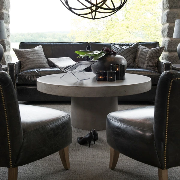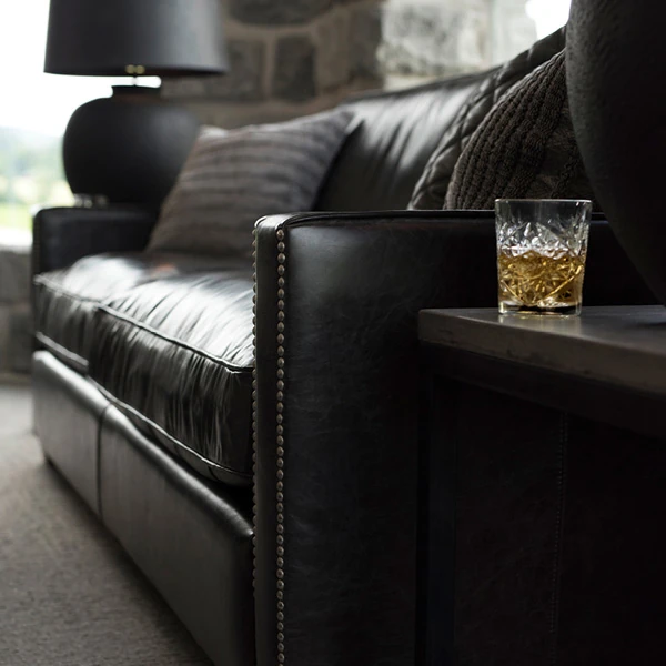 Top grain cow leather. Ash leg. Hardwood/plywood frame. Webbing/foam in the seat and in the back.