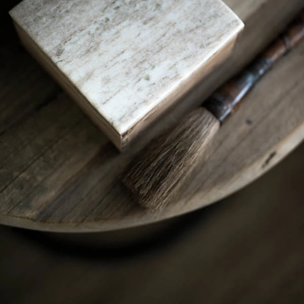 Side table in elm and metal, the table top has a rustic look with a beautiful patina, the metal base is sturdy but airy.