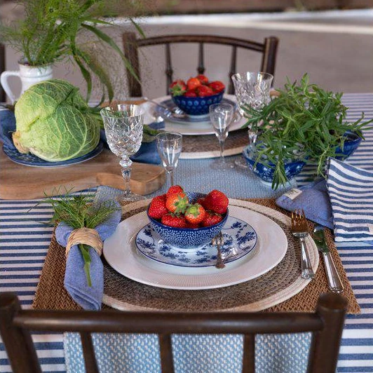 Create a timeless and cozy feeling at the table with this denim blue napkin from Fondaco. With its beautiful linen feel, made from recycled cotton and polyester, it is a conscious and stylish choice for all types of table settings. The muted blue color gives a calm, classic expression that fits perfectly in the rural home - all year round. The napkin measures 45x45 cm and is both soft, durable and easy to fold or tie for a personal table setting.