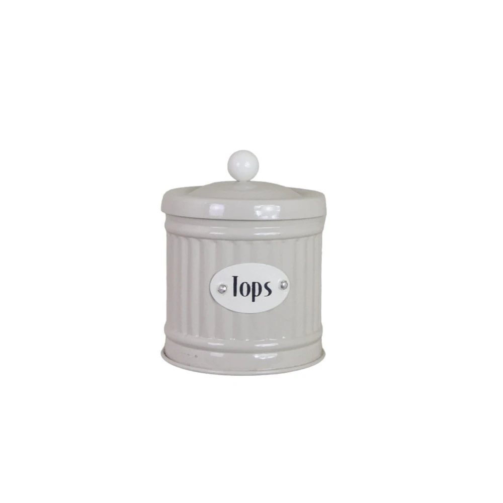 Plåtburken Hugo Tops i beige är en stilfull och praktisk förvaring för tops eller andra småsaker i badrummet. Den är tillverkad i metall med en lantlig design, försedd med en vit skylt märkt “Tops” på framsidan och ett matchande lock med en dekorativ vit knopp som handtag. Den kompakta storleken gör den perfekt för placering på handfat, hylla eller sminkbord – både funktionell och dekorativ i ett. Passar utmärkt ihop med övriga delar i Hugo-serien för ett enhetligt uttryck.
