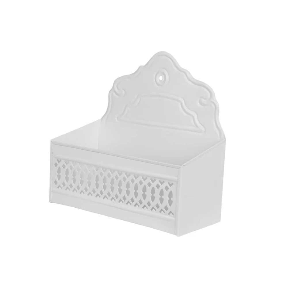 Vägglådan Hanna kombinerar lantlig charm med klassisk design. Den är tillverkad i vitmålat järn och pryds av ett fint utstansat mönster på fronten, vilket ger den en genuin gammaldags karaktär. Med sina mjukt böljande kanter blir Hanna en både praktisk och dekorativ detalj i hemmet eller trädgården.