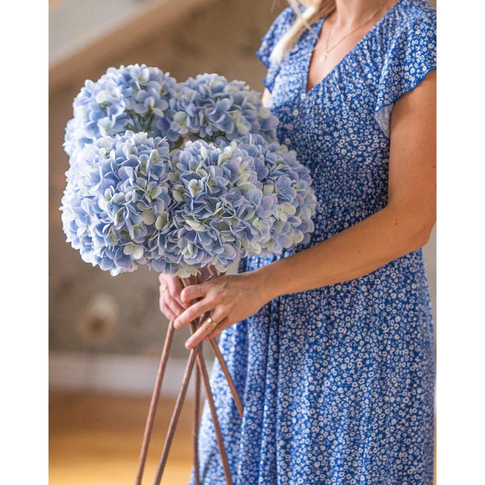 För dig som söker det där lilla extra till de stora golvvaserna eller höga krukorna är vår långa hortensiakvist på 84 cm det perfekta valet. Denna pampiga konstväxt från A Lot Decoration har en imponerande höjd och en mycket hög detaljrikedom i både blomma och stjälk.