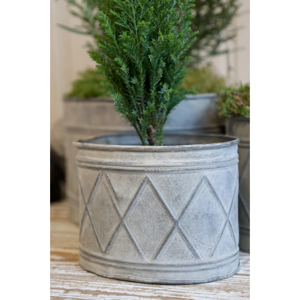 Dekorativa krukor i antik zink med Harlekinmönster – Chic Antique