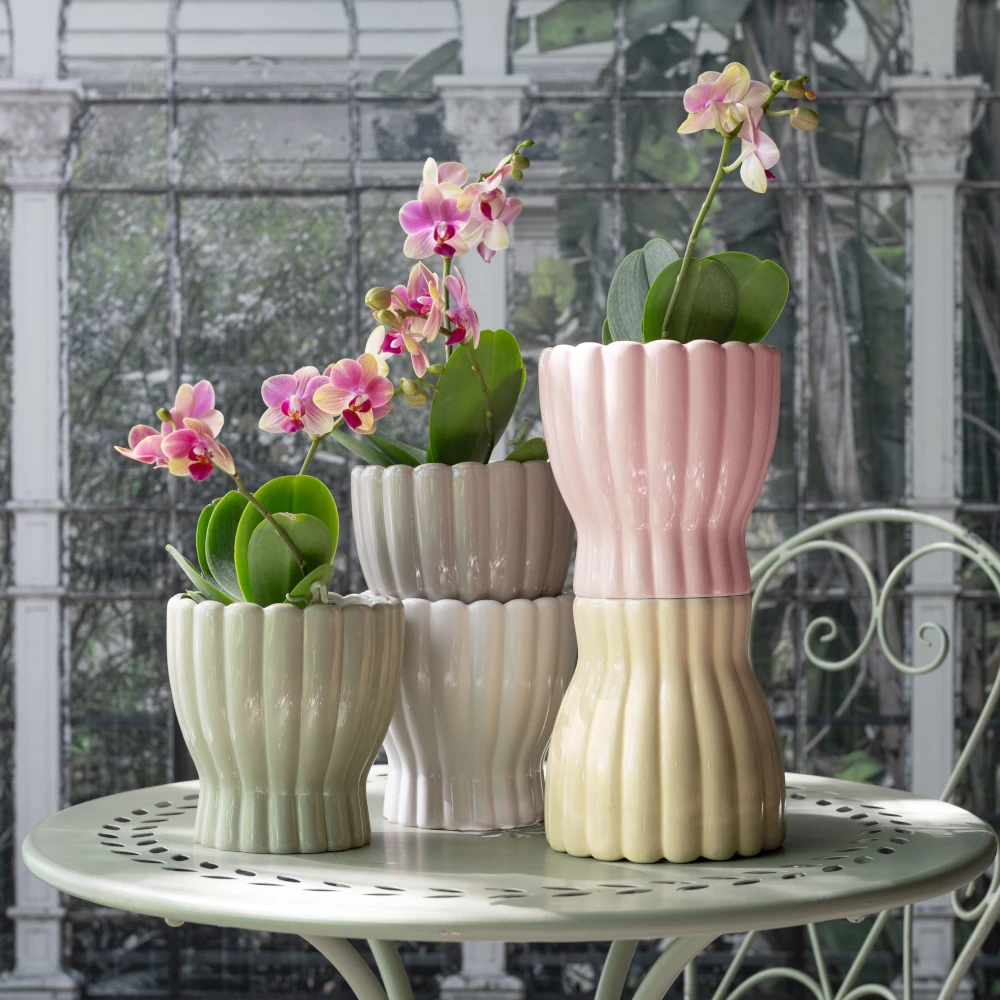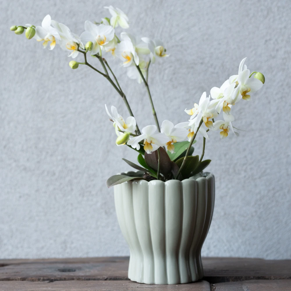 En stilfull och funktionell orkidékruka som lyfter dina växter och tillför en lugn, botanisk känsla till hemmet.