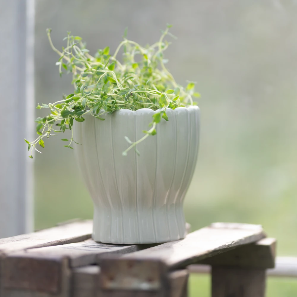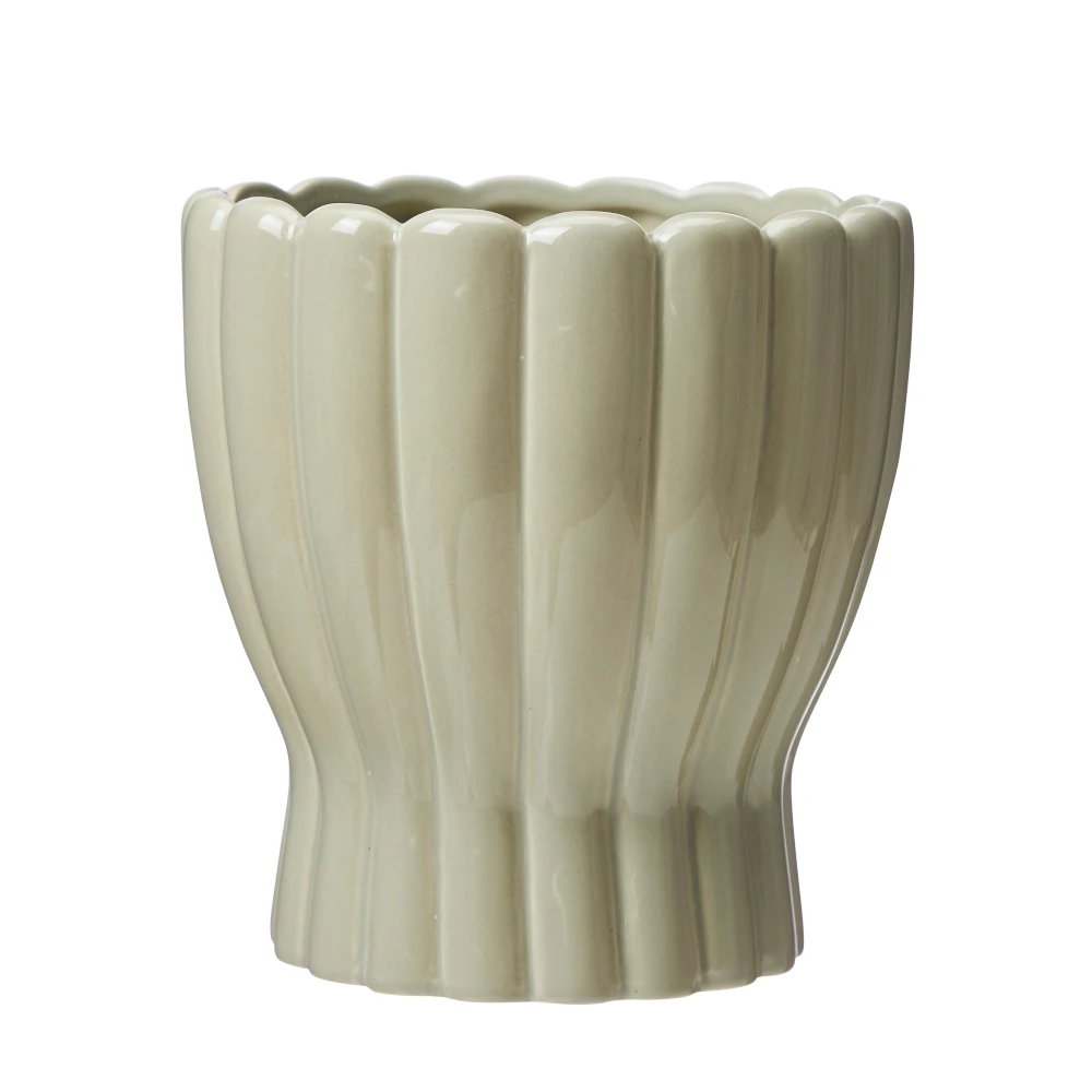 Orkidékruka Hedvig från Wikholm Form är en dekorativ kruka i stengods med mjuka, skulpturala former och en elegant räfflad struktur. Den gröna nyansen ger ett naturligt och harmoniskt uttryck som passar lika bra i moderna som klassiska inredningsmiljöer.