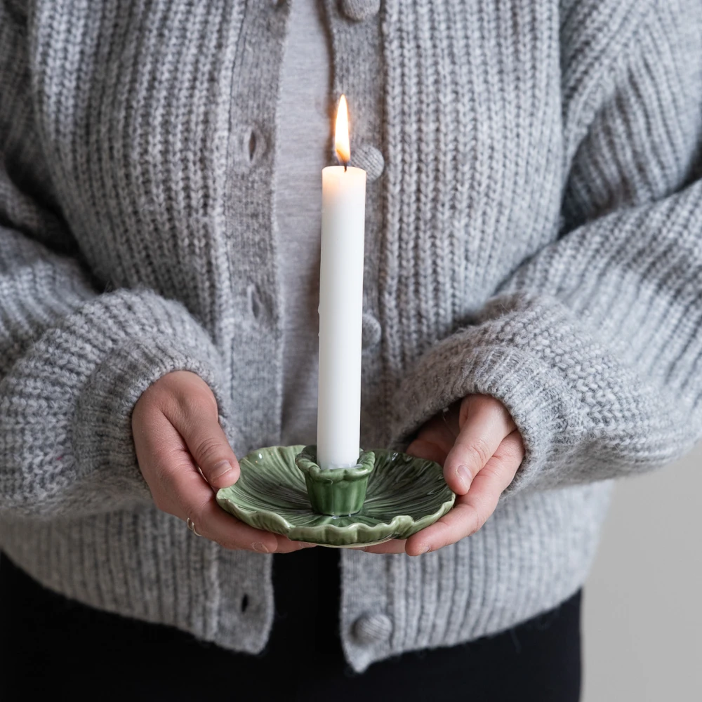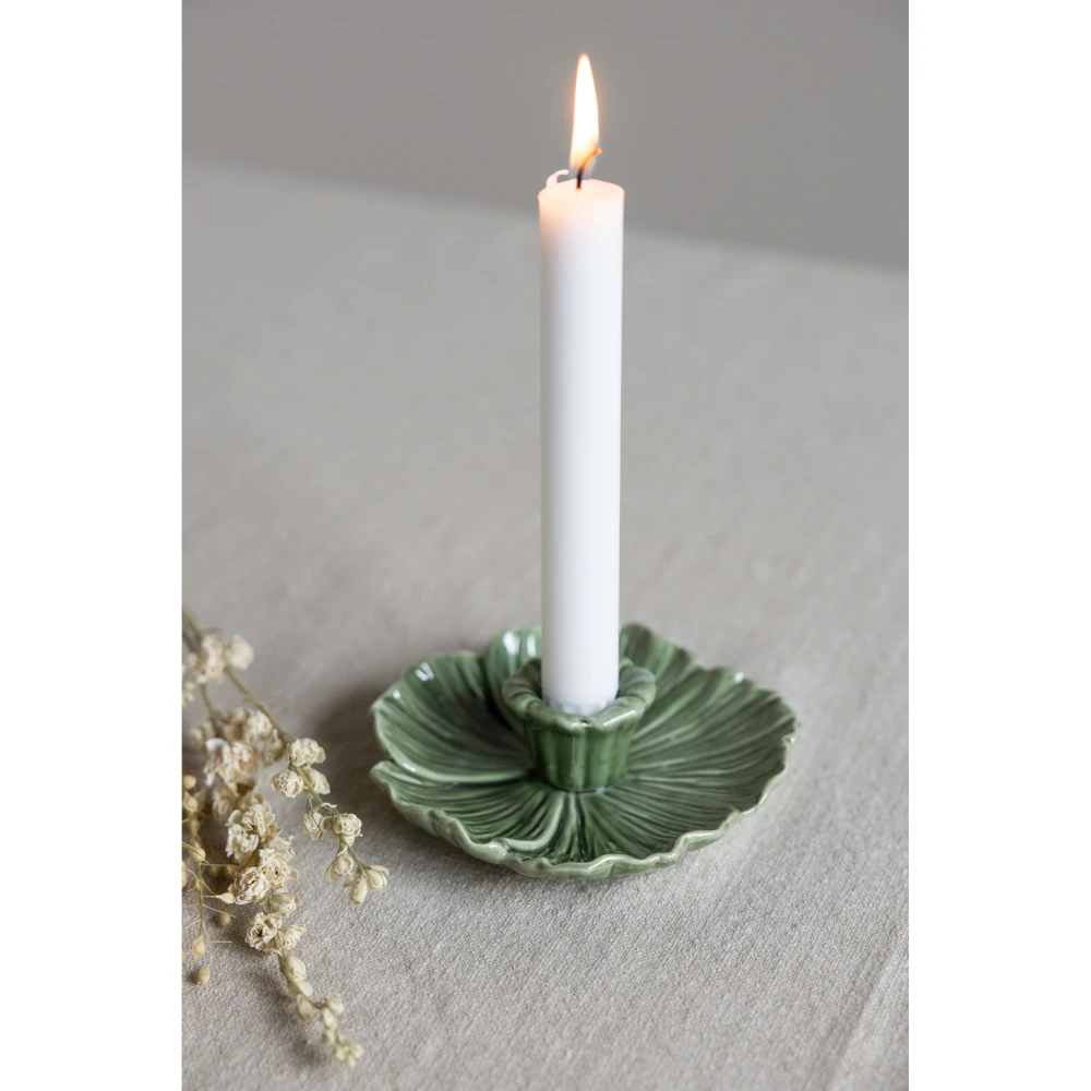 Ljusstake Botanik från Storefactory är en vacker och unik ljusstake i glaserad grön keramik, formad som en blomma. Den fungerar lika bra som ett dekorativt inslag i hemmet som en funktionell ljushållare. Placera den på matbordet för att skapa en varm och inbjudande stämning, eller låt den stå på nattduksbordet där den även kan användas som liten förvaring för smycken.