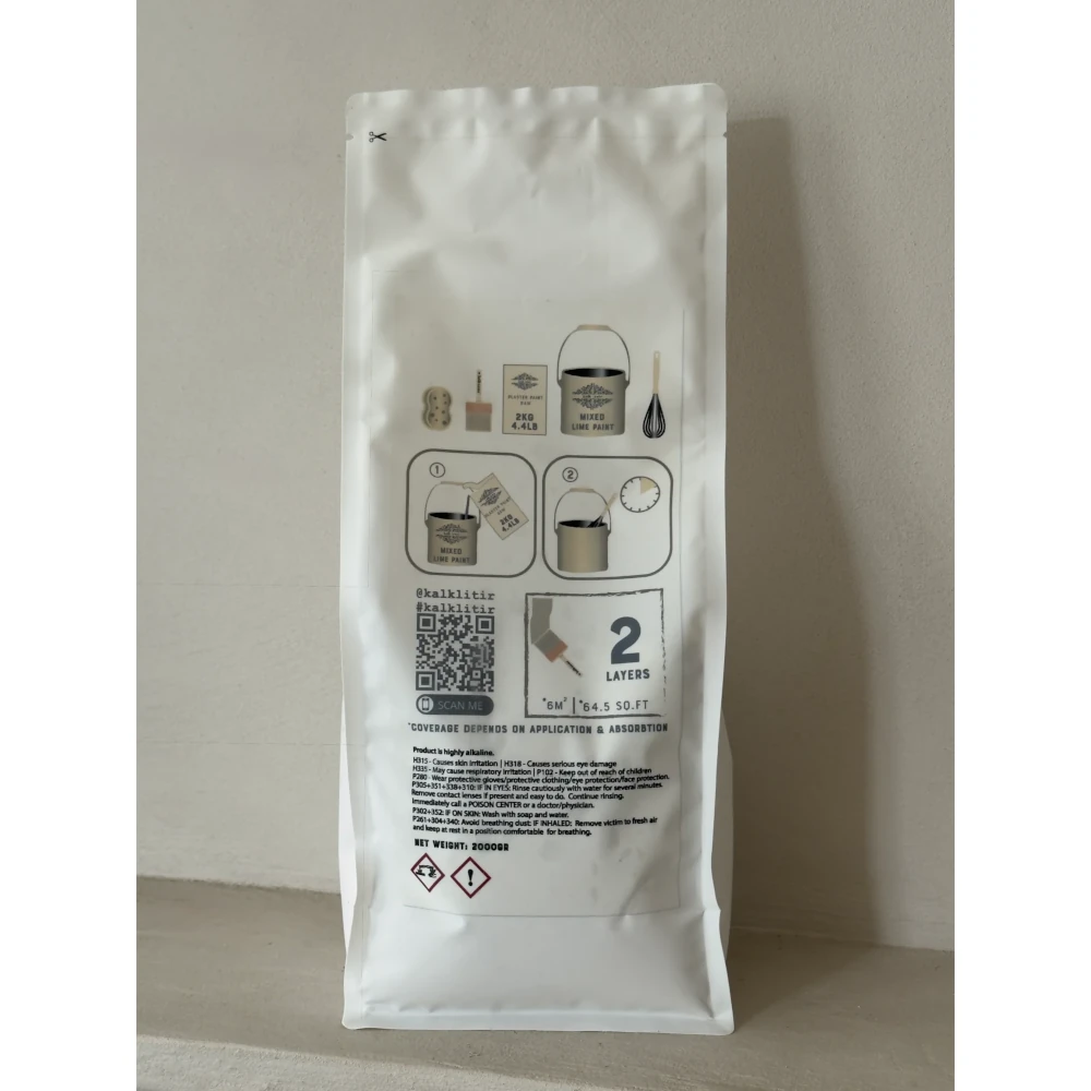 Kalklitir Plaster Paint Raw är en unik och användarvänlig tillsats som blandas direkt i färdigblandad kalkfärg för att skapa en yta med karaktär och djup. Resultatet blir en vacker struktur som påminner om puts eller gips, men som appliceras enkelt med pensel istället för spatel. Efter två lager kan ytan mjukas upp med en lätt fuktad svamp, vilket framhäver det naturliga uttrycket och ger en levande finish som liknar sten eller betong.