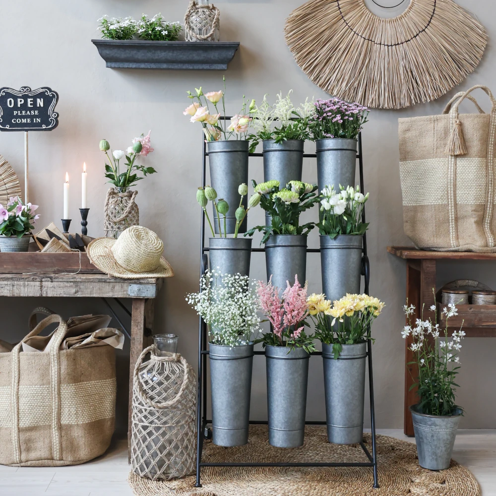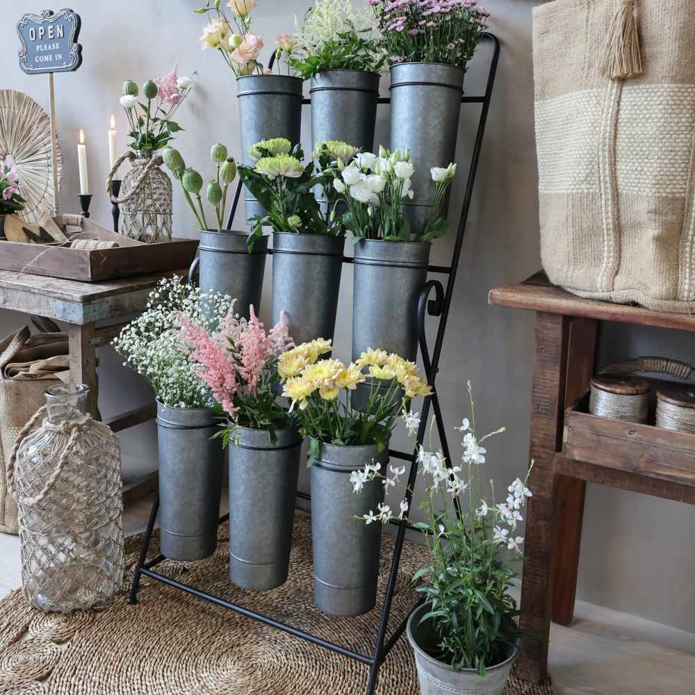 Blomhylla med 9 hinkar, Svart & Zink - Chic Antique