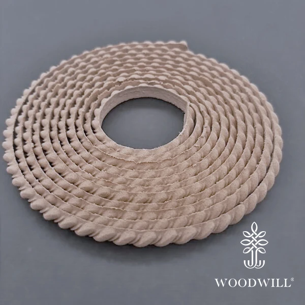 Denna trädekor levereras på rulle och är flexibel och böjbar vid uppvärmning. Genom att värma ornamentet försiktigt med hårfön eller värmepistol blir det mjukt och kan formas efter underlaget – även runt kanter, hörn och svängda ytor. När dekoren svalnar behåller den sin nya form.