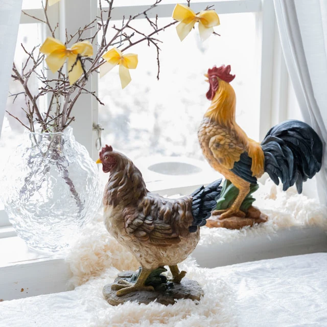 Denna dekorativa höna från A Lot Decoration är en charmig inredningsdetalj som skapar en mjuk och lantlig känsla i hemmet. Med sina varma bruna nyanser, naturtrogna fjäderdetaljer och stadiga hållning blir den ett harmoniskt inslag i vår- och påskdekorationen.