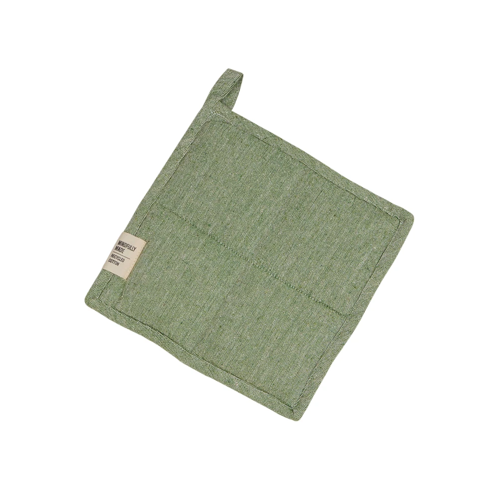 Lyft köksinredningen med denna fräscha grytlapp i äppelgrönt från Fondaco – en perfekt kombination av funktion, färg och hållbarhet. Grytlappen är tillverkad med omtanke om både miljön och hemmet, i en blandning av återvunnen bomull och polyester. Den pigga gröna tonen ger ett livfullt inslag i det lantliga köket och passar fint tillsammans med trädetaljer och naturmaterial. Praktisk, slitstark och lätt att hänga upp – en medveten detalj som gör skillnad i vardagen.